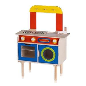 Der Traum eines jeden Kindes! Mit dieser Küche aus Holz werden Sie ihre Kinder begeistern können. Hier sind der Phantasie beim Spielen keine Grenzen gesetzt. Die Küche, bestehend aus Herd, Backofen und Spülbecken, bietet viele verschiedene Spielmöglichkeiten. Details: - Küche (Herd, Backofen und Spülbecken) - Arbeitsfäche - Hängeleiste mit 3 Haken - 3 Schalter (für Backofen und Herd) - 2 Türen (Backofen- und Schranktür) - Material Küche: Kiefernholz - Farben: Blau, Grün, Gelb, Rot und Weiss - Gesamtgröße (B/H/T): 58x77,5x29cm - Gewicht: 5,2kg - Nicht geeignet für Kinder unter 3 Jahren!