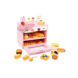 Dieser schönen und stabile Ofen wird schon mit jeder Menge Zubehör geliefert. Die Drehknöpfe kleicken beim Drehen. Ditollen Lebensmittel werden mit Magneten oder Klettelementen zusammengehalten und können mit dem Holzmesser zerteilt werden.
