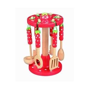 6-teiliges Küchenbesteck und Ständer im Strawberry- Design für die Spielküche Material: Holz Höhe: ca. 26 cm Durchmesser: ca. 15 cm *Alter: 3+