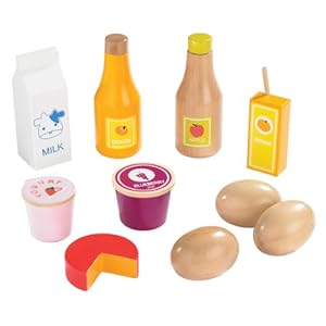 Unterstützen Sie die Kreativität Ihres Kindes und fördern Sie so die emotionalen und sozialen Fähigkeiten. Mit diesem hochwertigen, auf die Bedürfnisse der Kinder abgestimmten, Holzspielzeug bereichern Sie gezielt die Spiel- und Erlebniswelt Ihres Kindes. Im Set enthalten ist alles, was zur Grundausstattung eines Kühl- und Gefrierschrankes gehört. Es besteht aus einer Flasche Orangensaft, einer Flasche Apfelsaft, einer Pappe Milch, einem kleinen Trinkpäckchen Orangensaft (inklusive Trinkstäbchen), einem Becher Joghurt, einem Becher Blaubeer- Marmelade, einem Käse und drei Eiern. So ausgestattet gibt es keinen Grund mehr ständig zum Laden an der Ecke zu gehen. Gesunde Lebensmittel - Dieses Set enthält die wichtigsten Lebensmittel für den Kühlschrank. z. B. Saft, Eier, Käse, Marmelade, Milch - 12 Teile