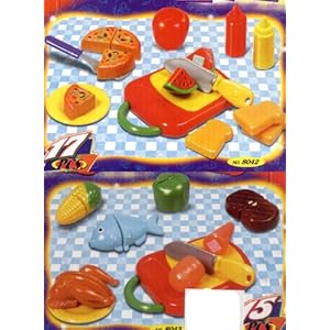 tolles Set für jede Kinderküche 30 Teile Gemüse Obst Pizza Fisch Geflügel mit Schneidbrett uvm . Das Besondere - das Gemüse ist richtig schneidbar (mit Klettverschluss) - so wird das Kochen noch realistischer. Aus Kunststoff daher waschbar. 32 Teile in 2 schönen Geschenkskartons. ab 3 Jahren