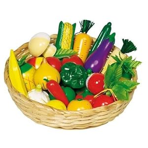 Das Material besteht aus HOLZ 24teil. Obst und Gemüsekorb für Kaufmannsläden. Material: Holz. Maße: Korbdurchmesser 21cm. Farben: giftfrei und speichelfest - entsprechend den Sicherheitsbestimmungen EN 71. Nicht für Kinder unter 3 Jahren geeignet, wegen verschluckbarer Kleinteile.